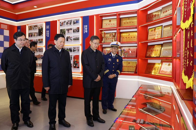 调研组一行实地参观了北京市朝阳区消防救援支队奥林匹克公园特勤站,观看应急管理部直属机关党建工作专题片,了解基层党建工作提质增效等情况。郭文奇与王祥喜就学习贯彻四中全会精神、全面提高机关党建质量等情况进行了深入交流,对应急管理部加强政治引领、压实党建责任、建强党务干部队伍、推动党建和业务融合等给予肯定。