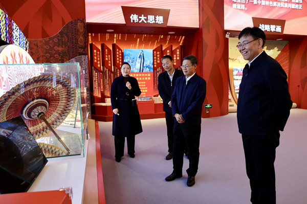 调研组一行听取了国家民委机关党建工作情况和基层党组织以习近平总书记关于加强和改进民族工作的重要思想为根本遵循,聚焦铸牢中华民族共同体意识主线推动党建与业务融合互促情况,实地参观了铸牢中华民族共同体意识文物古籍展。郭文奇与陈瑞峰就学习宣传贯彻党的二十届四中全会精神、落实机关党建主体责任、以高质量党建促进高质量发展的情况进行深入交流,对国家民委层层压实机关党建主体责任、以高质量党建促进民族工作高质量发展的成效给予肯定。